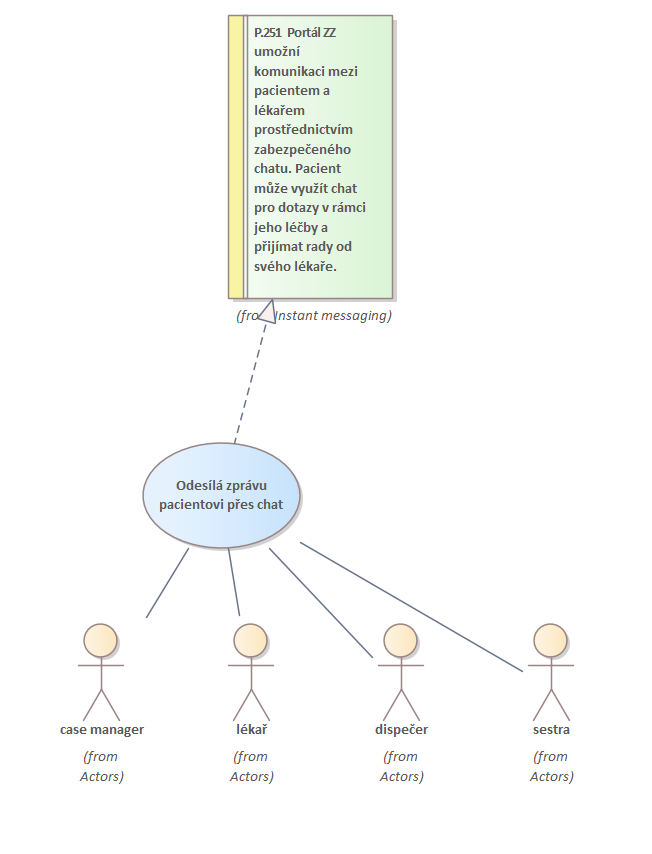 Odesílá zprávu pacientovi přes chat : Use Case diagram