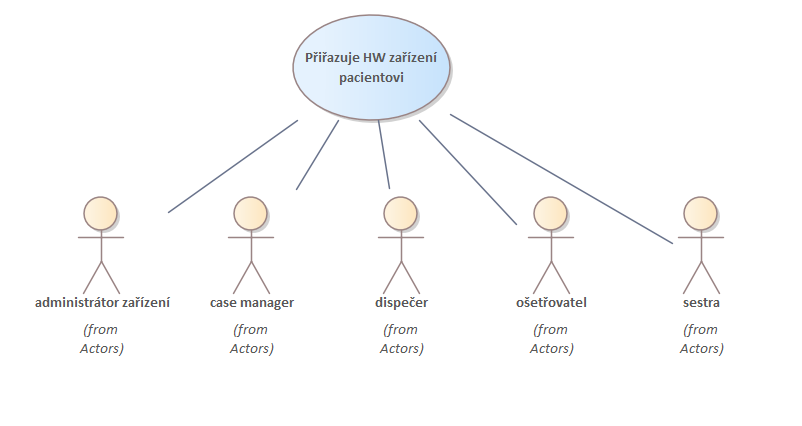 Přiřazuje HW zařízení pacientovi : Use Case diagram