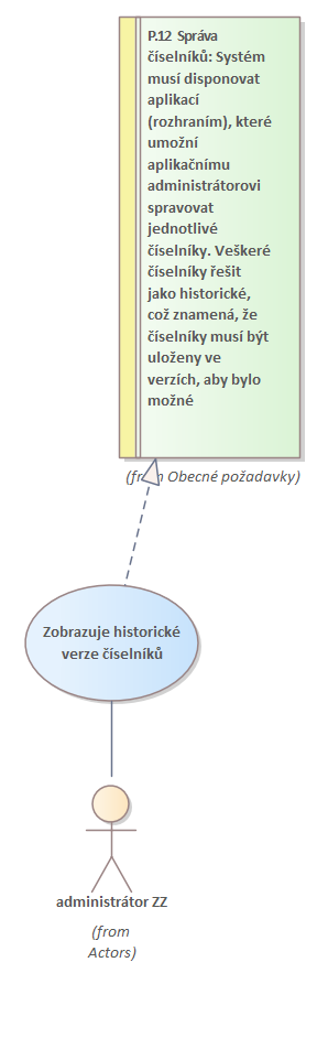 Zobrazuje historické verze číselníků : Use Case diagram