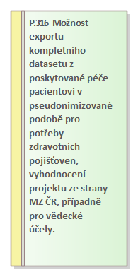 P.316 Možnost exportu kompletního datasetu z poskytované péče pacientovi v pseudonimizované podobě pro potřeby zdravotních pojišťoven, vyhodnocení projektu ze strany MZ ČR, případně pro vědecké účely.