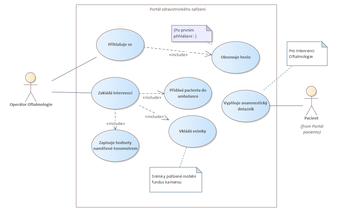 Operátor Oftalmologie a Portál zdravotnického zařízení : Use Case diagram